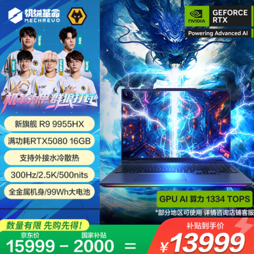 想要換新高性能游戲本可以選擇機械革命蒼龍16 Ultra游戲本。其搭載AMD RyzenTM9 9955HX處理器和RTX 5080,性能優(yōu)異,提升熱門游戲的性能和畫質。搭載迅影屏,支持300Hz超高刷新率、2560×1600高分辨率,采用16:10黃金顯示比例,為消費者提供優(yōu)質游戲畫面。采用全金屬機身、暮石灰配色,配置RGB炫彩LOGO、54顆燈珠RGB氛圍燈帶,非常炫酷。機械革命蒼龍16 Ultra游戲本(R9-9955HX 32G 1T RTX5080 2.5K 300Hz)京東原價15999元,可享補貼立減2000元,到手價13999元。