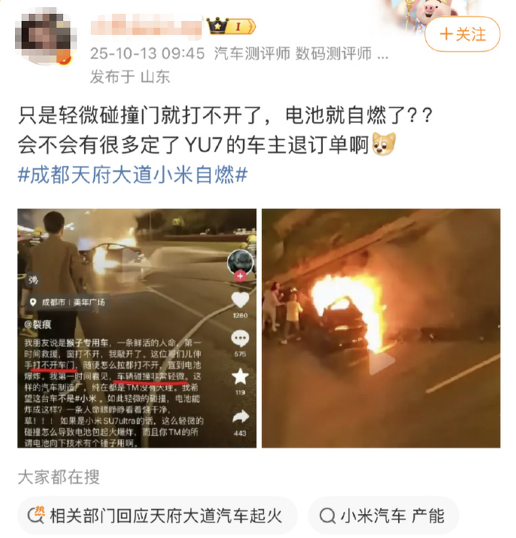 對于一些網(wǎng)友和媒體關(guān)注的“自燃”問題,雖然新能源車自燃的情況雖然時有發(fā)生,但并不是每一次事故都能簡單歸結(jié)為“自燃”。這次小米SU7的起火,是由劇烈碰撞引發(fā)的,碰撞后電池系統(tǒng)或其他部件可能出現(xiàn)了損壞,導致車輛起火。專業(yè)人士也指出,這種情況在傳統(tǒng)燃油車以及新能源車中都有可能發(fā)生,關(guān)鍵在于碰撞的劇烈程度,而不是單純的電池問題。