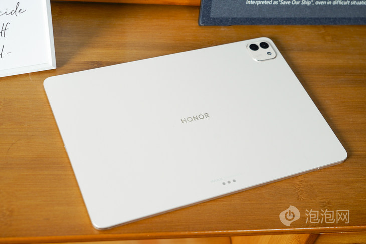 榮耀MagicPad3 Pro正面采用了四等窄邊的屏幕設計,達到了91%的超高屏占比,前置攝像頭則放置在了長邊上,是當下平板的主流設計。前置攝像頭采用了900萬像素傳感器,視頻會議等簡單使用需求可以輕松滿足。