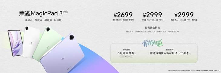榮耀MagicPad3 Pro擁有浮光金、月影白和星空灰等三款配色,將于10月23日開啟全渠道首銷,首銷優(yōu)惠價(jià)3799元起。