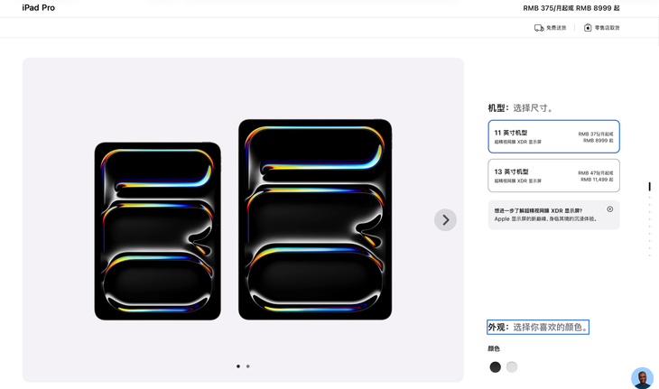 第八代iPad Pro在中國大陸的起售價與前代一致,11英寸版本起售價約為人民幣8999元,13英寸起售價約為11499元,將于10月22日正式開售。兩種尺寸均適合需要高性能處理和AI應用的創(chuàng)意工作者及專業(yè)用戶選購。