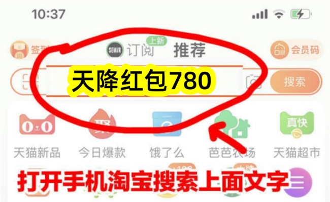 淘寶app搜索:【天降紅包780】,最高可領(lǐng)取25888元,是淘寶天貓平臺(tái)力度最大、使用頻次最高的紅包口令,務(wù)必牢記。