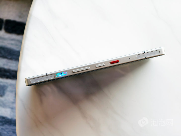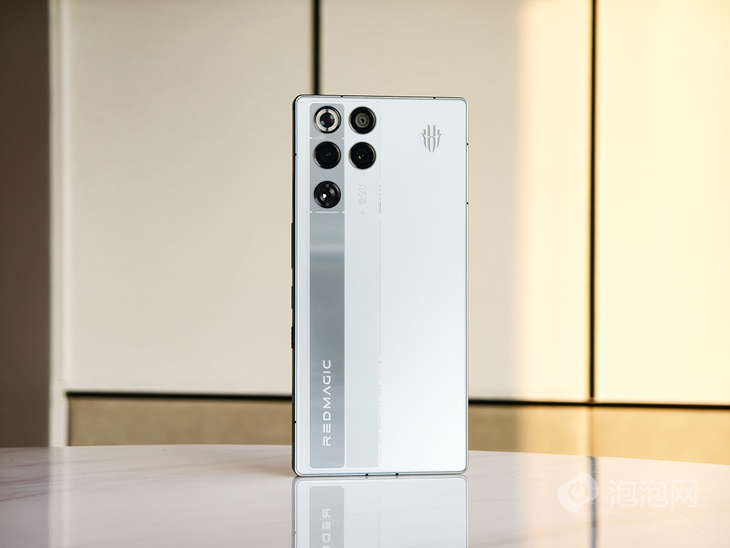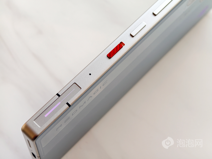 紅魔游戲手機11 Pro延續(xù)了紅魔家族化的設計風格,背部純平,無任何凸起。我們拿到的是銀翼戰(zhàn)神配色,背部呈現(xiàn)三種質感,包括鏡面、紋理以及啞光,不僅好看,而且手感出色。