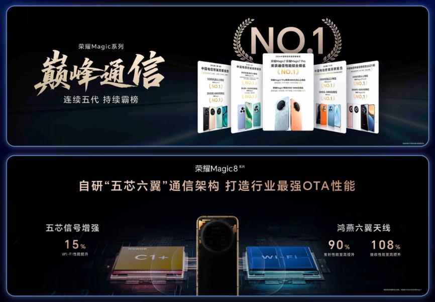 通信方面,榮耀Magic8系列全系配備榮耀鴻燕六翼天線、榮耀鴻燕云圖、榮耀優(yōu)速通技術(shù),同時(shí)支持北斗衛(wèi)星短信功能,帶來(lái)翻倍的暢連體驗(yàn)。