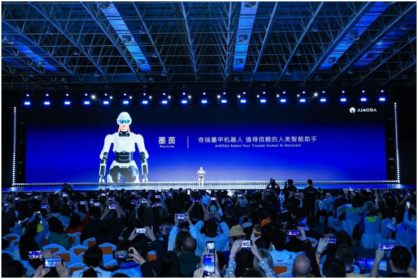 "我的故事要從三年前說起。"在奇瑞集團(tuán)CTO高新華博士的精彩發(fā)言后,墨甲機(jī)器人"墨茵"登臺(tái)亮相,并自主完成整場能力展示與演講發(fā)布。在短短三分鐘內(nèi),她系統(tǒng)回顧了奇瑞墨甲機(jī)器人從最初構(gòu)想到產(chǎn)品落地,再到走向真實(shí)場景與全球市場的歷程。