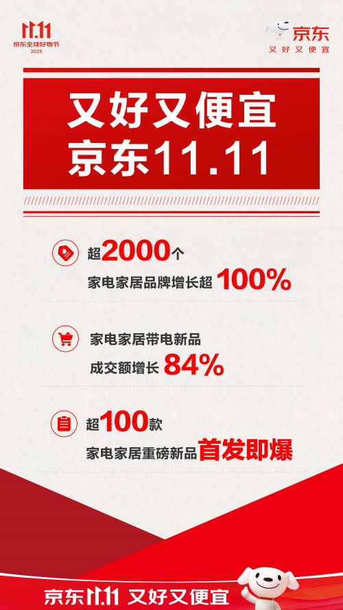 京東11.11家電家居全渠道增長(zhǎng)強(qiáng)勁!京東MALL家居品類(lèi)成交額同比增長(zhǎng)超8倍