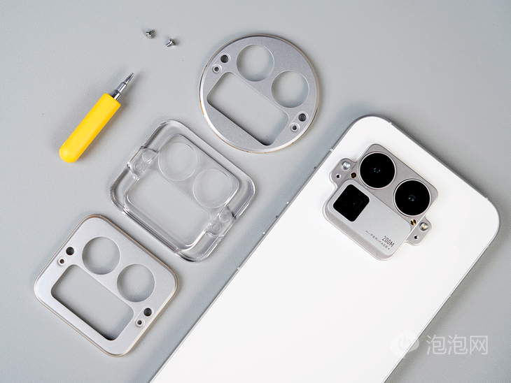 真我GT8 Pro的個(gè)性化體現(xiàn)在了鏡頭模組的設(shè)計(jì)上,它采用了一個(gè)可更換DECO的設(shè)計(jì),默認(rèn)情況下,手機(jī)配備的是一個(gè)圓形的DECO,通過兩顆螺絲就可以對DECO形狀進(jìn)行替換。