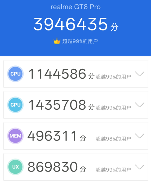 經(jīng)過實(shí)測,真我GT8 Pro的安兔兔跑分最終成績?yōu)?946435。