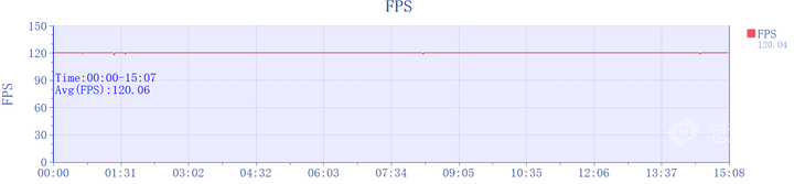 游戲方面,《王者榮耀》極高幀率+超高分辨率模式下,平均幀率為120.06fps,游戲過程非常流暢。