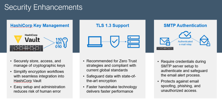 PowerStore 4.2引入TLS 1.3協(xié)議,符合最新全球安全標(biāo)準(zhǔn)。相比舊版本,TLS 1.3提供更強(qiáng)加密與更快握手速度,在滿足零信任架構(gòu)要求的同時,兼顧性能與安全,確保數(shù)據(jù)傳輸全程可靠。