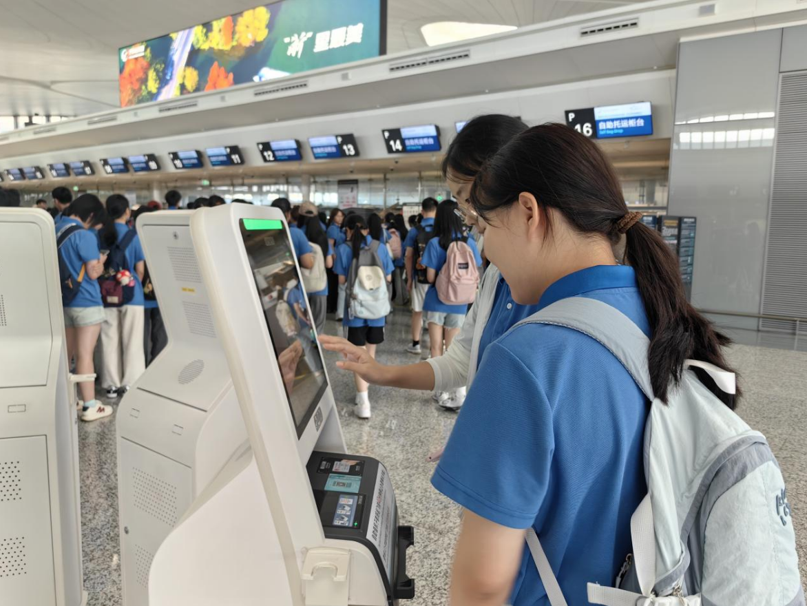 他們跟隨由航站樓主任帶領(lǐng)的講解團(tuán)隊(duì),依次參觀了出發(fā)大廳、值機(jī)區(qū)、安檢通道等核心運(yùn)行區(qū)域。