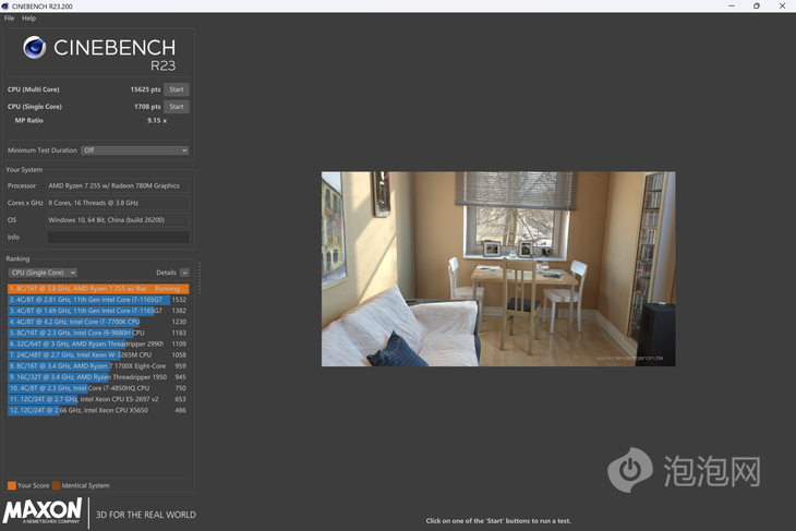在Cinebench R23當(dāng)中,銳龍7 H 255處理器多核成績(jī)15625pts,單核成績(jī)1708pts,跑分成績(jī)與當(dāng)下主流輕薄本的成績(jī)相差無幾,性能表現(xiàn)出色。從上面CPU測(cè)試的表現(xiàn)來看,銳龍7 H 255處理器擁有出色的單核和多核性能表現(xiàn),可以充分能夠滿足日常辦公使用、簡(jiǎn)單的視頻剪輯等生產(chǎn)力或者學(xué)習(xí)需求。