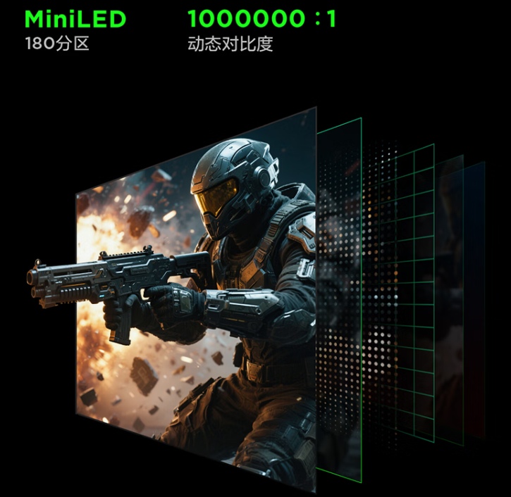 高刷新率只是基礎(chǔ),雷鳥F6真正的“殺手锏”在于將高端MiniLED技術(shù)帶入了百元價(jià)位段。搭載180分區(qū)背光與QD量子點(diǎn)技術(shù),使顯示器在暗場(chǎng)場(chǎng)景下依然細(xì)節(jié)分明,動(dòng)態(tài)對(duì)比度達(dá)到1000000:1。例如在爭奪大龍的混戰(zhàn)中,河道暗部的視野邊緣、技能光效的層次過渡,都能清晰呈現(xiàn),幫助選手提前預(yù)判戰(zhàn)局。同時(shí),F(xiàn)6兼容AMD FreeSync Premium與NVIDIA G-Sync Compatible雙協(xié)議,無論玩家使用A卡或N卡,都能實(shí)現(xiàn)幀率同步,杜絕畫面撕裂。可以說,它像一位無聲的裁判,確保每一幀輸出都公平、準(zhǔn)確。