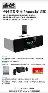 沈明威 · 2012-09-16 00:31 - 全球首款iPhone5音箱 奮達(dá)微博送豪禮