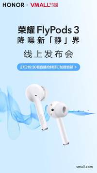 自去年在V30發(fā)布會亮相以來,榮耀FlyPods3耳機憑借卓越降噪功能引起很多媒體和消費者的關(guān)注。2月27日19:30,榮耀將迎來首場耳機線上直播,而這場直播發(fā)布會的主角就是降噪新“靜”界的榮耀FlyPods3。