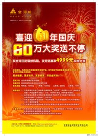 ??? 泡泡網(wǎng)機箱電源頻道2009年9月25日 為了回饋消費者,給祖國獻上一份厚禮,增添節(jié)日的氣氛,金河田開展了此次總獎金額為60萬元的促銷活動,并將暑促的活動延續(xù)到10月10日。本次活動將產(chǎn)生近3000個獲獎名額,其中最高獎金為4999元。 金河田迎60年國慶促銷海報 ??? 發(fā)短信即可贏4999元大獎 ??? 金河田此次活動采用短信抽獎形式,消費者凡購買金河田防輻射機箱,均可發(fā)送短信