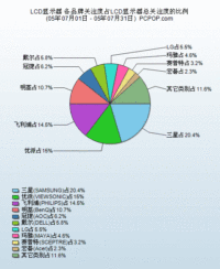 ??? 為了讓您對市場與產(chǎn)品建立起宏觀的了解,PCPOP顯示器頻道利用產(chǎn)品庫的豐富資源,展開了對市場以及產(chǎn)品的調(diào)研工作,在這里,我們整理并分析了自2005年7月1日到6月31日這一階段,液晶市場的品牌關(guān)注度、價格關(guān)注度以及尺寸關(guān)注度三項數(shù)據(jù),這也直觀的反映出用戶對于市場的關(guān)注角度以及購買趨向?!?品牌關(guān)注度:???? 三星依然獨占鰲頭,但20.4%%的關(guān)注度比上個月則略有下降。而優(yōu)派的關(guān)注度則從上個