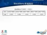 ????泡泡網(wǎng)資訊頻道1月26日?有網(wǎng)友爆料稱,中國移動(dòng)近期將推出黑莓終端及資費(fèi)套餐。此次曝光的為黑莓的GSM版本,并非此前熱議的支持中國自主3G標(biāo)準(zhǔn)TD-SCDMA版本的黑莓手機(jī)。 中移動(dòng)黑莓終端價(jià)(圖片來自互聯(lián)網(wǎng)) 中移動(dòng)黑莓服務(wù)套餐資費(fèi) ??? 從資料看,中國移動(dòng)推出的黑莓服務(wù)及終端定價(jià)偏高,仍鎖定高端商務(wù)人群,對于BIS服務(wù)的相應(yīng)內(nèi)容沒有更多的透露。 ??? 據(jù)了解,中國移