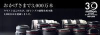 ??? 2006年1月19日,佳能公司宣布旗下EF鏡頭創(chuàng)造了鏡頭生產(chǎn)的嶄新里程-截至當(dāng)天全球累計(jì)生產(chǎn)量達(dá)到3000萬支。??? 佳能公司生產(chǎn)用于佳能EOS系列自動(dòng)對(duì)焦單鏡頭反光相機(jī)(AF SLR)的EF鏡頭始于1987年,工廠位于日本宇宮都(Utsunomiya)。1995年8月,佳能累計(jì)生產(chǎn)了1000萬支EF鏡頭;2001年2月,產(chǎn)量達(dá)到了2000萬支;到今天,佳能累計(jì)生產(chǎn)了3000萬支鏡頭。這