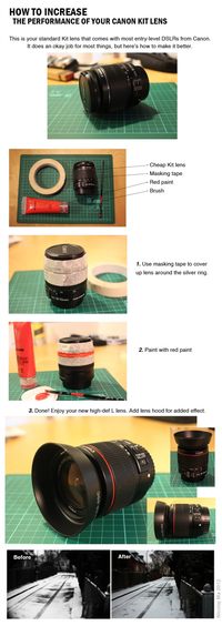 ????泡泡網(wǎng)數(shù)碼影像頻道2月22日?狗頭如何變紅圈?之前國外有蛋疼人士發(fā)表了一篇“How to Increase the Performance of Your Canon Kit Lens”的文章,教您如何將佳能狗頭EF-S 18-55升級為紅圈鏡頭。并且在最后附上了改進(jìn)前后的成像效果比較…… ??? 好吧這是蒙傻子呢?雖然很讓人無語,但這種惡搞精神還是很有娛樂效果的。之后我們在網(wǎng)上
