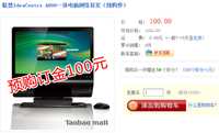 ??? 泡泡網(wǎng)臺(tái)式機(jī)頻道2月25日 一波接一波的一體式電腦在2009年陸續(xù)發(fā)布,從1月4日上市的方正心逸T300一體機(jī),到最近發(fā)布的明基AMD平臺(tái)上網(wǎng)一體機(jī),但最為引人關(guān)注的還是要數(shù)聯(lián)想即將發(fā)布的IdeaCentre A600一體電腦,但關(guān)于聯(lián)想A600何時(shí)在國(guó)內(nèi)上市的消息一直沒有被公布。 ??? 今天,我們突然發(fā)現(xiàn),聯(lián)想IdeaCentre A600一體電腦已經(jīng)在其官方淘寶旗艦店開始接受預(yù)