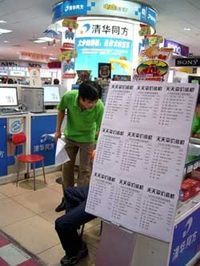 ??? 消費(fèi)者買品牌電腦被裝了盜版系統(tǒng),已經(jīng)不正常。而如果告訴你,這個(gè)盜版軟件居然還按照正版收錢,那就更是匪夷所思了。但這樣的事在中關(guān)村賣清華同方等品牌電腦的店里就能遇到。賣場(chǎng)調(diào)查??? 上周六,記者走訪了中關(guān)村多家電子賣場(chǎng)中的8家品牌電腦專賣店。 結(jié)果發(fā)現(xiàn),在這8家中有清華同方等4家廠商的代理銷售商在違規(guī)給用戶提供盜版WINDOWSXP操作系統(tǒng)的安裝。聯(lián)想100%%裝正版??? 記者走訪了不同賣場(chǎng)