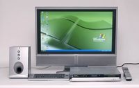 V>??? 現(xiàn)今Media Center PC的概念已經(jīng)深入人心,而眾多廠商也不失時機的推出各種新品來滿足用戶的需求,今天我們位大家極少一款搭配了大屏幕液晶電視的Mebius TX 系列AV中心PC,這款產(chǎn)品風格時尚,比較貼合現(xiàn)代年輕人的家居品味。???搭配寬屏液晶電視???? 新款產(chǎn)品型號為PC- TX100K ,芯片組從Intel 865GV升級至Intel 915 GV,采用Pentium