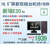 ??? 泡泡網(wǎng)電腦頻道4月2日 對于辦公電腦來說,最重要的就是需具備穩(wěn)定的運行能力和充足的數(shù)據(jù)緩存空間。想要選購這樣一款辦公電腦,顯然品牌臺機要比組裝機來的更靠譜!比如神舟電腦這款專為家庭、企業(yè)等辦公群體量身定制的臺式機新瑞E20 D1,就有著獨到的品牌魅力。 ??? 它采用超省空間的小機箱設計,標配一臺18.5英寸的寬屏液晶顯示器。配置上,搭載英特爾新雙核2.6G處理器G550,內(nèi)置4G DD