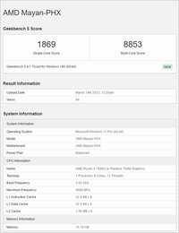 陳梓泓 · 2023-03-15 10:02 - 6核12線程,AMD銳龍5 7640U處理器Geekbench跑分揭曉