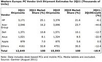 吳宗蔚 · 2011-08-19 08:59 - 二季度西歐PC出貨量降19%% 僅蘋果增長
