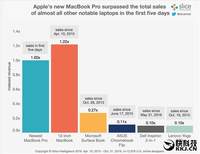 不管新MacBook Pro的接口有多激進(jìn),它還是很受用戶的追捧,這才剛上市沒(méi)幾天,其已經(jīng)創(chuàng)造了新的記錄?! ∈袌?chǎng)研究公司Slice Intelligence給出的報(bào)告顯示,全新MacBook Pro上市剛5天,銷(xiāo)售額就已經(jīng)達(dá)到2015款MacBook年銷(xiāo)售額的78%%,這個(gè)銷(xiāo)售成績(jī)是蘋(píng)果沒(méi)有想到的。之前菲爾席勒就曾表示,看到新MBP的訂單很是吃驚?! 〈送?,這份統(tǒng)計(jì)報(bào)告還顯示,新MacBook