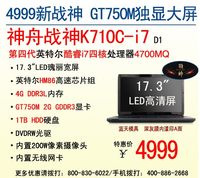 張涵 · 2013-12-19 00:23 - 4999新17.3吋GT750M獨(dú)顯神舟K710C-i7
