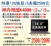 張涵 · 2014-01-02 00:59 - 新年特惠!神舟2G獨(dú)顯本精盾K460N-i3