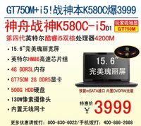 - 探底3999元GT750M戰(zhàn)神本K580C-i5特惠