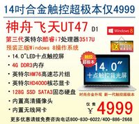 周坤 · 2013-11-27 02:00 - 超值i7觸控超極本!神舟UT47僅4999元