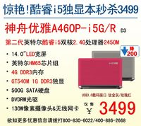 胡賓 · 2012-04-25 00:00 - 14吋GT540M獨(dú)顯i5本 神舟A460P售3499