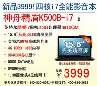 胡賓 · 2012-04-26 00:00 - IVB四核i7!神舟15吋新K500B售3999元