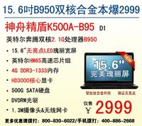張偉偉 · 2012-04-28 00:12 - 神舟15吋4G內(nèi)存合金本K500A-B95售2999