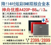 張偉偉 · 2012-03-23 08:15 - 14吋彩合金i3本!神舟A420P降至2899元