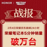 2020年春節(jié)期間,京東推出的榮耀京東巔峰24小時活動,在點燃眾多數(shù)碼愛好者關(guān)注熱情的同時,也憑借產(chǎn)品的品質(zhì)化優(yōu)惠福利吸引了眾多消費者加入購買狂潮。隨著活動迎來收官之戰(zhàn),京東電腦數(shù)碼巔峰24小時的銷售戰(zhàn)績也已出爐:據(jù)京東電腦數(shù)碼戰(zhàn)報顯示,2月4日榮耀筆記本巔峰24小時活動中,榮耀筆記本5分鐘銷量即破萬臺,全天成交額是去年同期的9倍,在京東筆記本電腦品類銷量前十位排名中,榮耀一家更是獨占八位,包攬了多項銷售榜的冠軍,戰(zhàn)績斐然。
