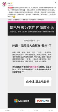 - 微軟小冰解鎖新技能:能和你聊聊電影