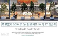 ????蘋果今天更新了投資者關(guān)系頁面,并宣布將于2016年10月27日,周四公布2016年第四財(cái)政季度(第三自然季度)的財(cái)報(bào)。相信Q4財(cái)報(bào)將是最令人期待的一次,我們可以間接的了解iPhone 7和iPhone 7 Plus銷量情況。蘋果今年并沒有公布iPhone 7和7 Plus的首個(gè)周末銷量,所以很難與去年的iPhone 6s和iPhone 6s Plus進(jìn)行對比。????2016年第三財(cái)政季度