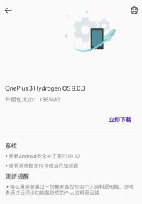 3月5日消息,近日有網(wǎng)友表示,自己的一加3手機(jī)獲得了系統(tǒng)更新推送。從更新信息來看,此次升級的版本為Hydrogen OS 9.0.3,升級包大小為1865MB。