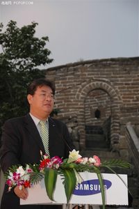 ??? 2007年8月16日晚,作為中國(guó)北京2008年奧運(yùn)會(huì)無(wú)線通訊領(lǐng)域的全球合作伙伴,中國(guó)北京2008年奧運(yùn)會(huì)火炬?zhèn)鬟f官方合作伙伴——三星電子在中國(guó)北京慕田峪長(zhǎng)城隆重召開(kāi)了名為“快閃時(shí)代 震撼來(lái)襲”的新品發(fā)布會(huì),正式向全球宣布三星最新閃存系列數(shù)碼攝像機(jī)的誕生,同時(shí)第一款閃存攝像機(jī)MX10A也將在8月底正式登陸中國(guó)市場(chǎng)。三星電子華北大區(qū)總經(jīng)理李鎮(zhèn)仲常務(wù)致開(kāi)幕詞??? 來(lái)自三星電子華北大區(qū)總經(jīng)理李鎮(zhèn)