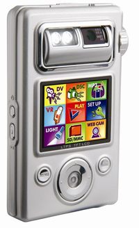??? 如果你已經(jīng)厭倦了擺弄那堆成年人的攝像機(jī),或者只是想讓你家不斷成長的小孩子在這個科技世界中受到正確的訓(xùn)練,那么Sega Toys有你需要的設(shè)備。這個68x85x40(毫米)的Movie Carrier手持?jǐn)z像機(jī)帶著一個沒勁、老套的節(jié)日禮物會有的所有特點(diǎn),但不同的地方在于,這臺小壞蛋可以拍攝full-motion全動態(tài)視頻。規(guī)格上,CMOS感光器,4倍變焦,1.5"顯示屏,SD接口,TV輸出,