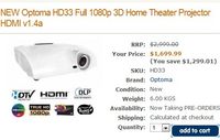 ??? 泡泡網(wǎng)投影機(jī)頻道8月12日 自全高清家用3D投影機(jī)發(fā)布以來,其高達(dá)35000元以上的價格,讓無數(shù)影音玩家望而卻步。不過,最近有好消息傳來,今年6月曝光的奧圖碼全高清家用3D投影機(jī)HD33或?qū)⑾略略趪鴥?nèi)市場發(fā)布,參考國外市場的定價,國內(nèi)售價有望闖入20000元關(guān)卡。 ??? 奧圖碼HD33采用德州儀器DLP DarkChip2 DMD芯片,具備1080p分辨率、1800流明亮度與400