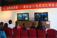 ??? 泡泡網(wǎng)數(shù)字家電頻道4月19日 3D的熱風(fēng)愈刮愈烈,越來越多的年輕人群把觀賞和體驗(yàn)3D視覺當(dāng)做時(shí)尚。在這股風(fēng)潮之下,4月17日,國內(nèi)最活躍的IT資訊網(wǎng)站——泡泡網(wǎng)在北京漁陽飯店舉辦了一場主題是“3D 如何健康看——愛好者3D電視對(duì)比體驗(yàn)會(huì)”的活動(dòng),針對(duì)時(shí)下市場最常見的兩種3D電視——不閃式3D和快門式3D電視,做了一次有趣的現(xiàn)場體驗(yàn)。 ????? 3D電視對(duì)比體驗(yàn)會(huì)現(xiàn)場照片 對(duì)比:不