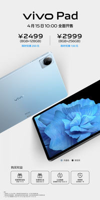 劉明鵬 · 2022-05-23 21:10 - vivo Pad今日正式開售,售價(jià)僅需2499元起