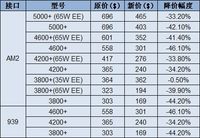 ??? 來自DigiTimes的消息——Intel計劃在7月23日發(fā)動有史以來最大規(guī)模的價格戰(zhàn),AMD則將在7月24日予以回擊,關(guān)于Athlon 64 X2系列AMD處理器的詳細降價信息目前已經(jīng)進一步明朗。??? 此次降價的Athlon 64 X2涉及AM2接口和939接口兩個系列,共計12款,包括5款35W/65W節(jié)能型號,但不包括1MB×2緩存的4800+、4400+、4000+等,這些型號已