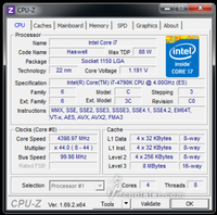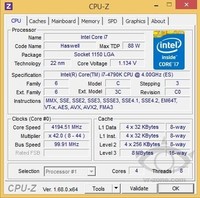 ????泡泡網(wǎng)CPU頻道5月28日?VR-Zone上午公布了Core i7-4790K、Core i5-4690K的首批CPU-Z截圖,證實了它們的型號、規(guī)格,但稍顯遺憾的是,i7-4790K的顯示頻率為4.2GHz,而它其實是可以動態(tài)加速到4.4GHz的。滄者極限剛剛又放出了一張新的截圖,終于實打?qū)嵉卣宫F(xiàn)了“4.4GHz”,外頻還是標準的100MHz,倍頻則是44x。 CPU-Z